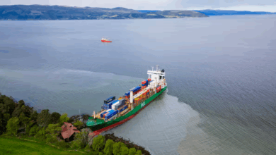 في حادث غير معتاد.. رجل نرويجي يستيقظ على سفينة شحن ضخمة في حديقة منزله