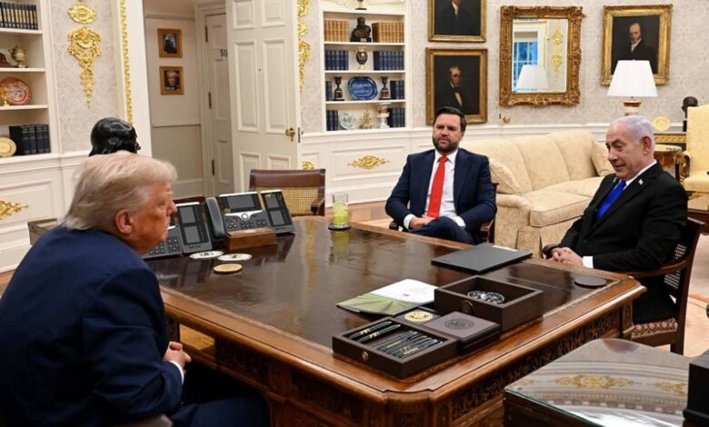 والتقى الرئيس الأميركي دونالد ترمب رفقة نائبه جي دي فانس رئيس الوزراء الإسرائيلي بنيامين نتنياهو، أمس الثلاثاء، للمرة الثانية خلال 24 ساعة، في حين يكثف سيد البيت الأبيض الضغوط من أجل التوصل إلى اتفاق لإنهاء “مأساة” الحرب في غزة.