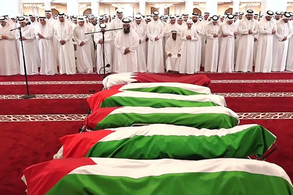 و أدى صاحب السمو الشيخ تميم بن حمد آل ثاني أمير قطر صلاة الجنازة على ضحايا الهجوم، التي أقيمت في جامع الإمام محمد بن عبدالوهاب بالدوحة، وقدم التعازي لأسر شهداء واجب الوطن عقب مراسم التشييع في مقبرة مسيمير.