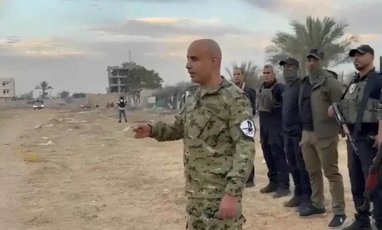 وظهر في المقطع غسان الدهيني، قائد ما يسمى بمجموعة “جهاز مكافحة الإرهاب – القوات الشعبية”، وهي إحدى الميليشيات المسلحة التي تنشط في مناطق سيطرة الجيش الإسرائيلي شرق مدينة رفح، بجوار شخص قال إنه أدهم عطا لله العكر من عناصر حماس.